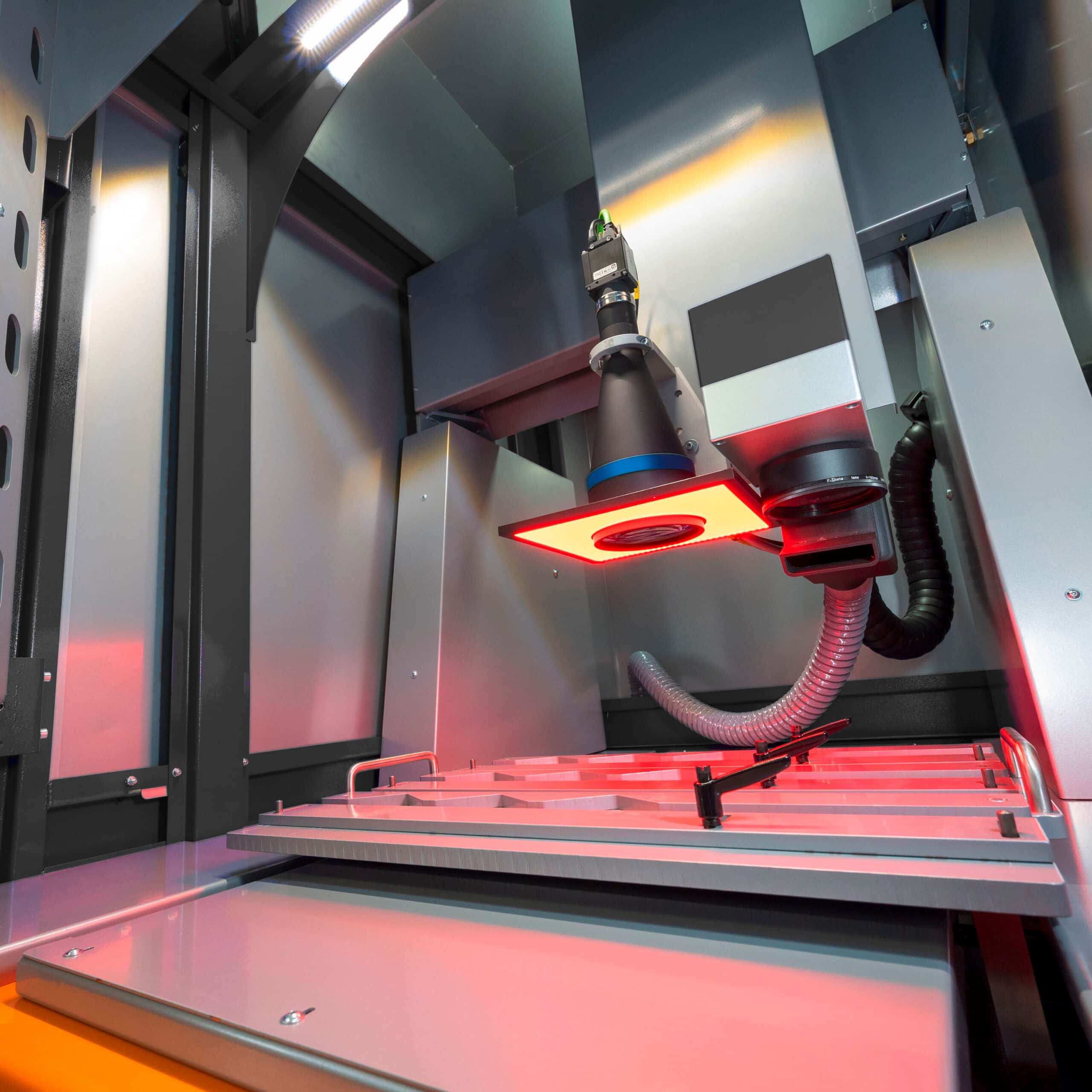 Modernste, hochauflösende Kamerasysteme in Verbindung mit integrierter 2D und 3D Bildverarbeitung lassen die M-Serie Pro zu einer intelligenten Produktionsmaschine werden.